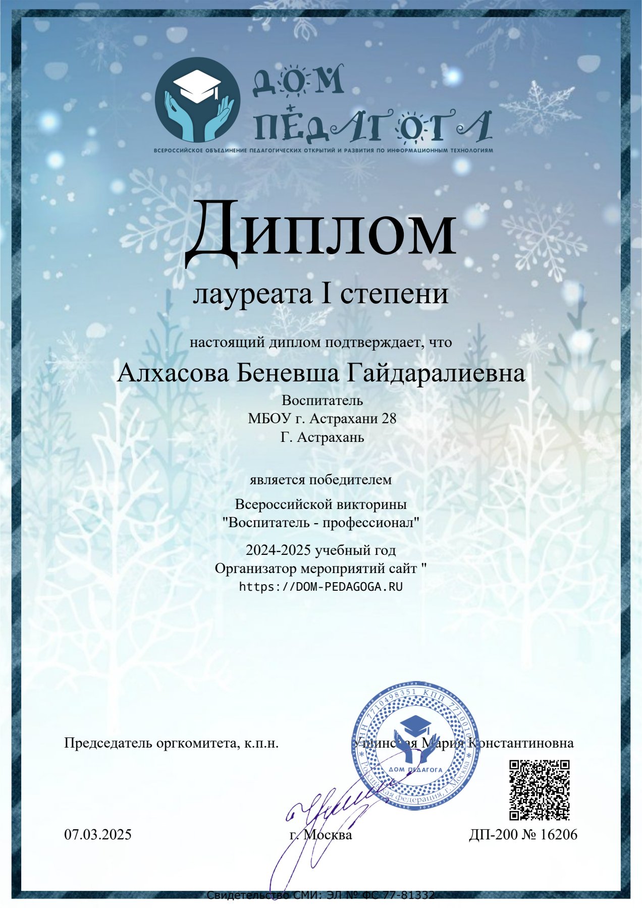 Всероссийский конкурс "Педагог-профессионал" 1 место