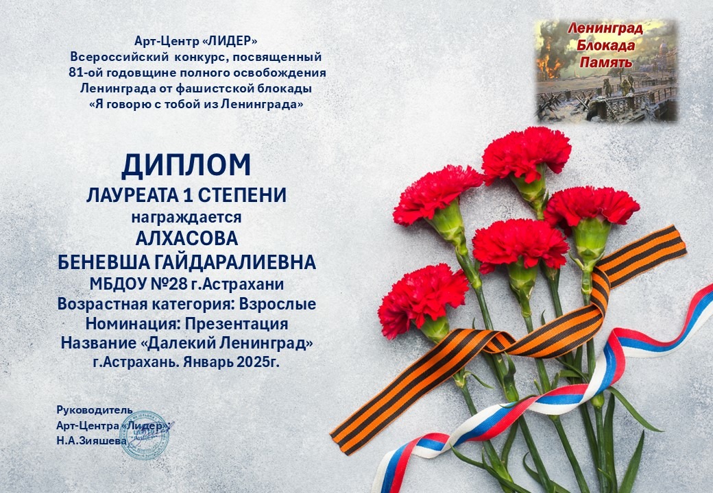 Всероссийский конкурс "Я говорю с тобой из Ленинграда"1 место