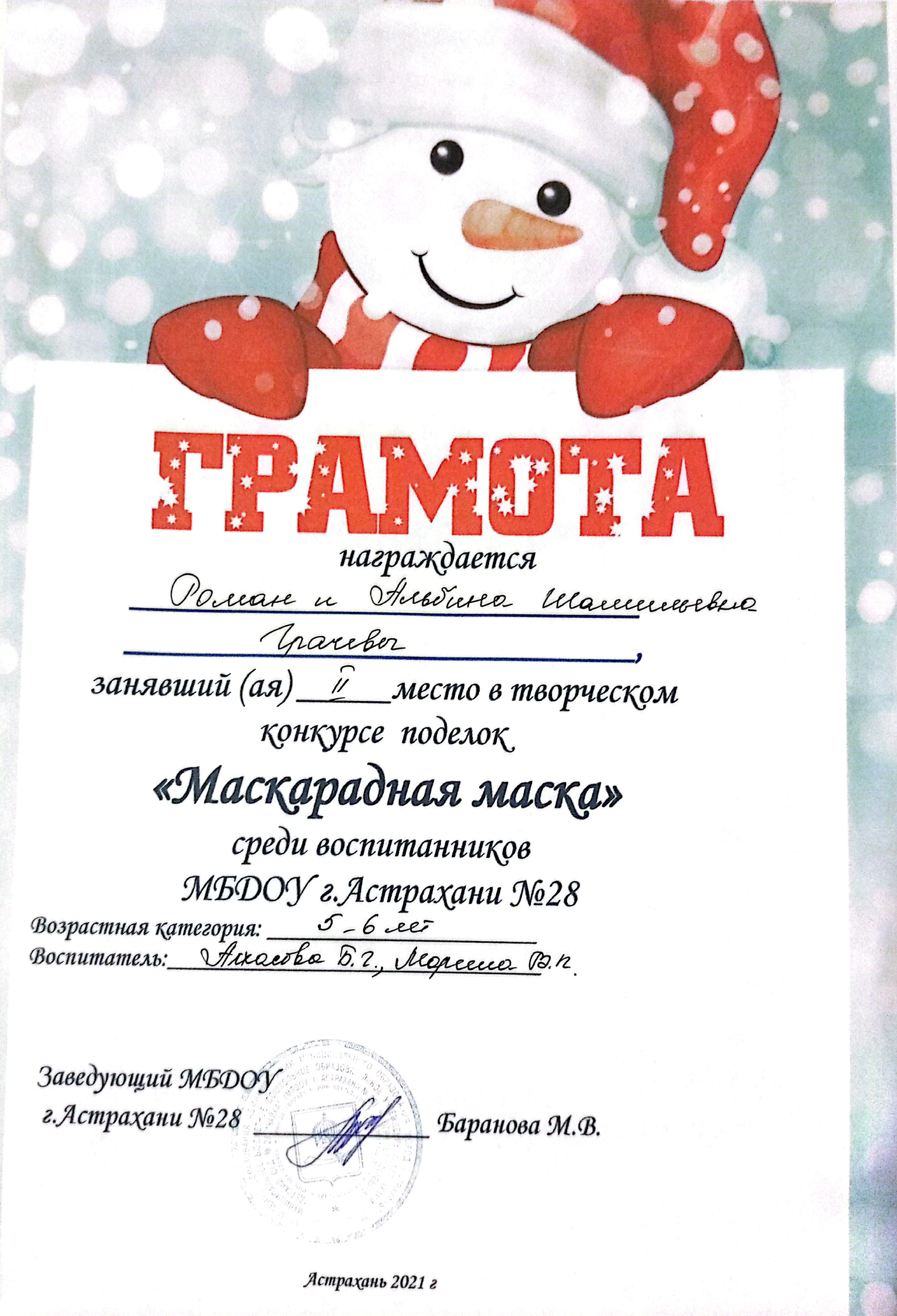 Диплом 1 степени
